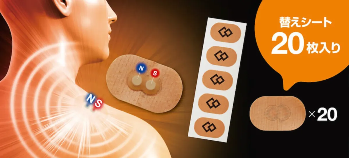 1枚でも十分に効果はありますが、コリを感じるポイントを挟み込むように2枚、3枚と近くに貼ることで、磁石同士が互いに引き合い、磁力のアーチがより広範囲かつ深部まで届くようになるのです。